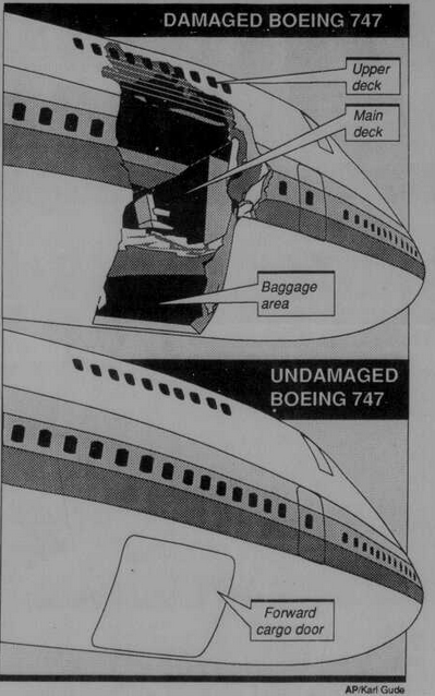 An illustration of the damage from the 747